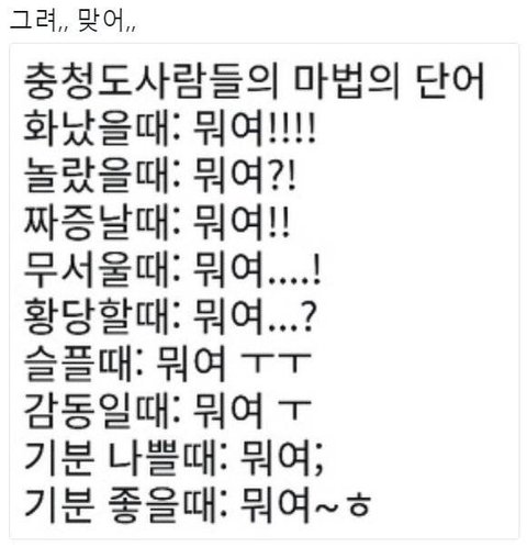느리다지만 개고기 먹을줄 알아?를 단 두자로 줄일줄 아는 동네임... 개 혀?