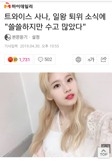 트와 사나 일왕언급 인스타 기사도 뜸 ㄷㄷ