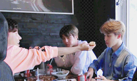 상황설명: 제이홉이랑 정국이 등 멤버는 이미 피자를 2개씩 먹고 지민이만 1개먹은 상황에서 2개 남았는데 하나는 지민이 주고 나머지 하나가지고 가위바위보를 해서 이긴 정국이가̆̈ 먹고 제이홉은 못먹게되자 지민이 자기껄 줌