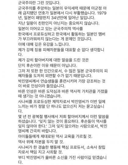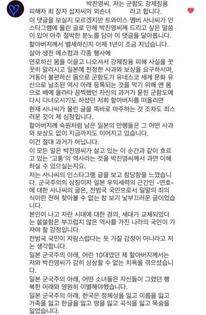 강제징용 피해자분의 손녀가 JYP인스타에 댓글 다심