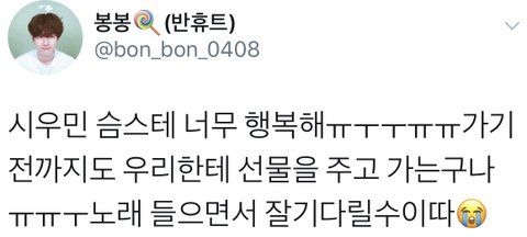 그래도 시우민 목소리로 3분 채워진 노래를 선물로 받게 되서 너무 고맙고 감동이야