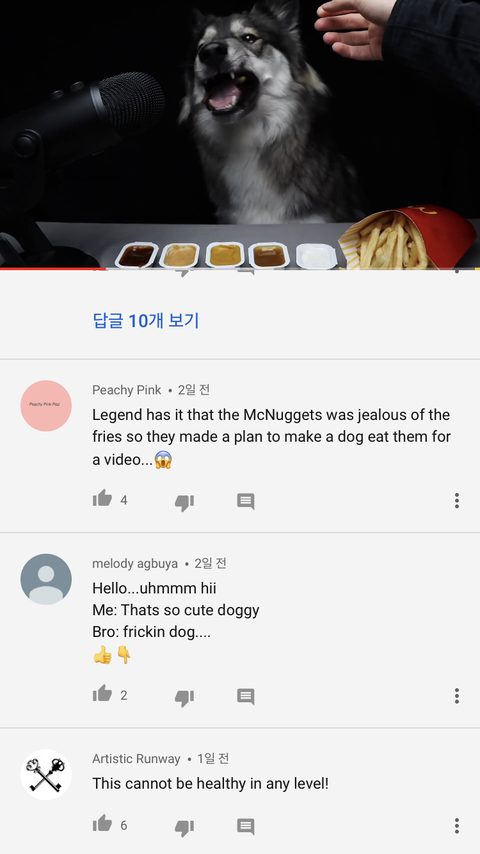 ASMR 보는데 강아지가 감자튀김 소스에 찍어서 주던데 먹어도 되는거야 …?