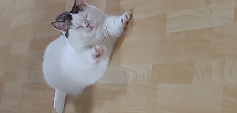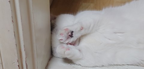 그 동안 집사가 잘 먹여서 턱 살이 무럭 무럭 잘 쪘네요.