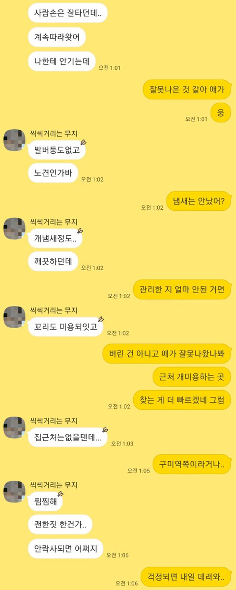 더럽지는 않았는데 약간 숨이 거칠어서 걱정됐다하네요