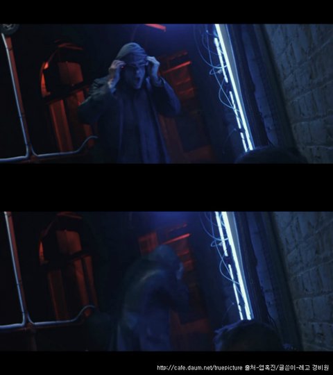 일순간 네온사인 빛으로 장식된 어두운 건물로 바뀌어 보입니다...