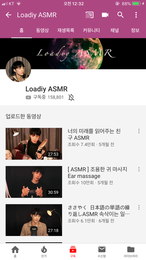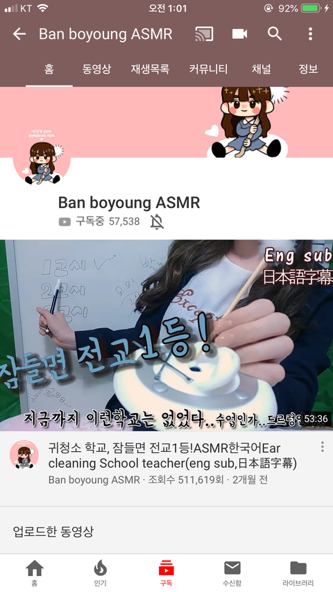 사실 이분은 판에서 asmr얘기 나오면 자주 언급되시는 분인데! 로디님은 잠 자기에 좋다면 이분은 공부하기에 좋은거같앙 노토킹이 많고 집중할 수 있는 소리가 많거든!