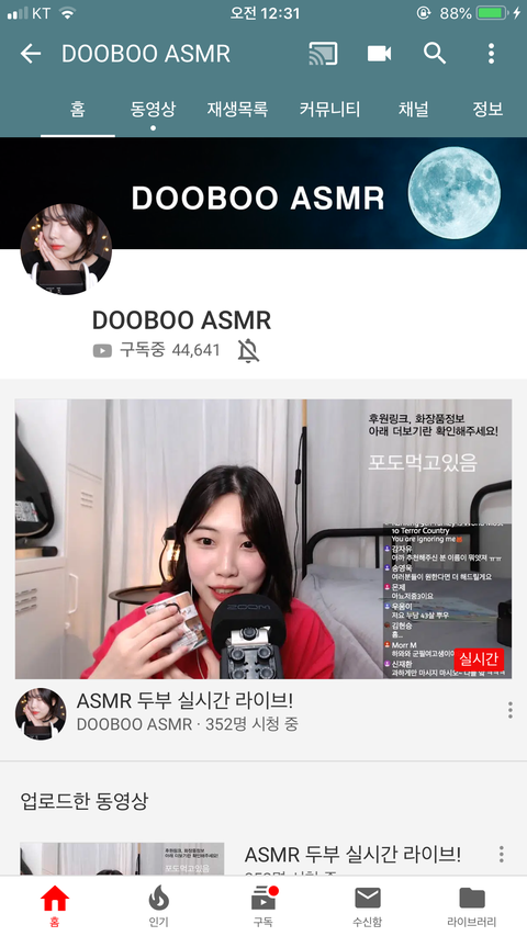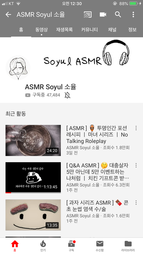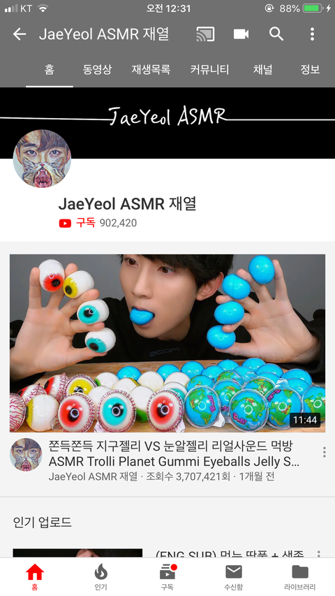 이분은 약간 호불혹 갈릴거같아..! 난 처음엔 좀 별로였는데 이젠 중독됨 ㅋㅋㅋ 이팅사운드 위주로 하시는데, 병맛이거든? 근데 이게.. 이분이 하시는 병맛짓이 팅클이 느껴져..!! 그냥 심심할때 보기 좋은 20분이 안넘는 영상들! 난 그래서 먹방보는것처럼 봐 ㅋㅋㅋ