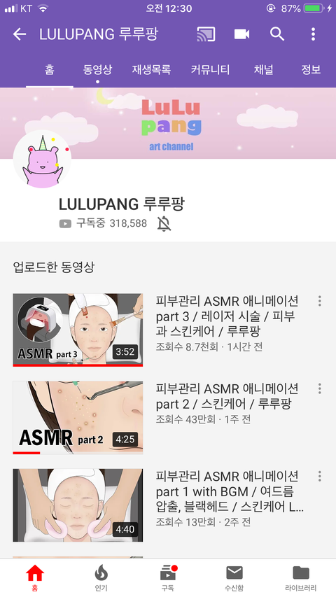 이분은 일러스트 영상이랑 asmr을 접목시켜서 영상을 만드셔! 근데 일러스트 영상의 퀄리티가 장난아님.. 디테일이 엄청나고든.. 이 분 영상이 팅클이 잘 느껴지는 이유 중 하나가 영상과 음향이 너무 잘어울이고 영상에 일러스트와 음향이 또 각각 너무 좋아서야 ㅎㅎ 재미로 봐도 난 좋고 자기 전에 들으니까 좋더라!