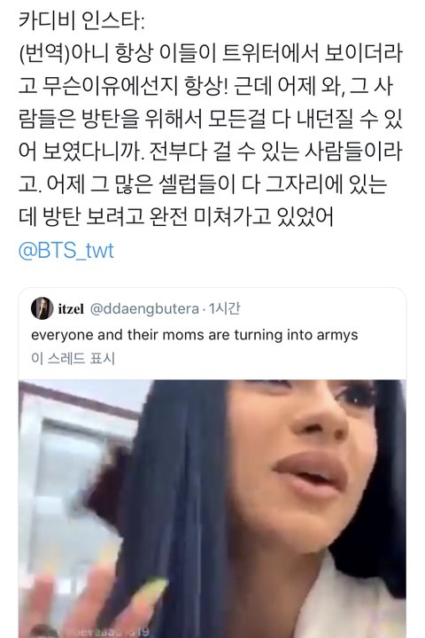 근데 카디비랑 니키 사이 안 좋아서 아이돌 필처링때 친해진 니키팬들이 카디비님이랑 사진찍은 거 보고 ‘오..맙소사..이건 안 본 걸로 하겠어..’이러던뎈ㅋㅋㅋㅋㅋㅋㅋ
