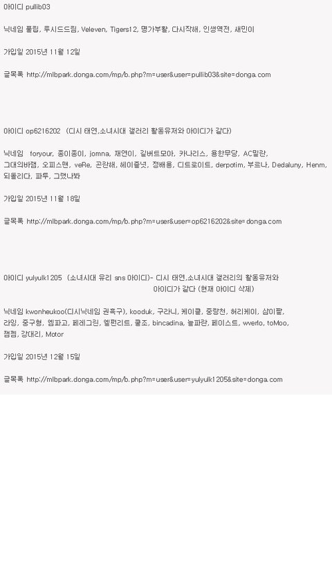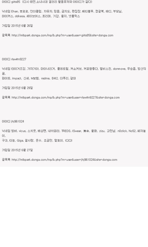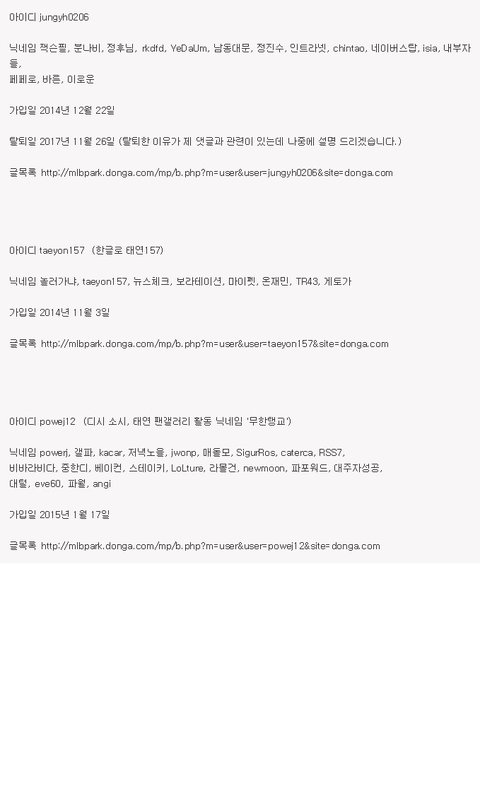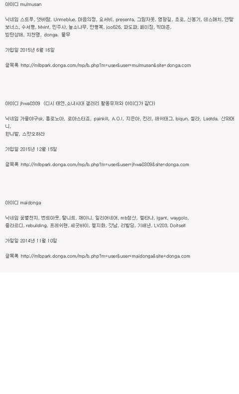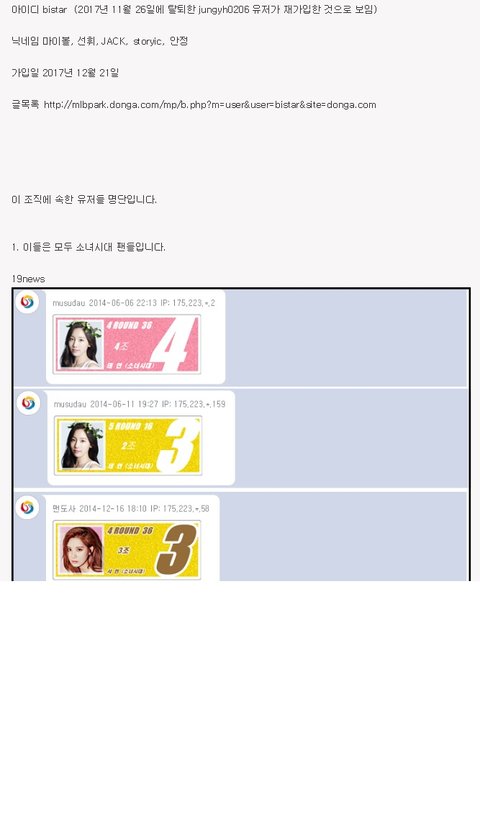 아이디 검색결과 소녀시대 팬카페 아이디, 디시 소녀시대 팬 아이디와 겹침 (한명은 마갤 운영자)