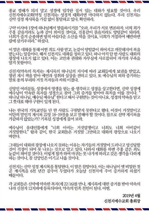 요즈음 교계에서는 신천지라는 단어만 들어도 아연실색하거나 무서워하는 사람들이 참 많습니다. ㅎㅎ