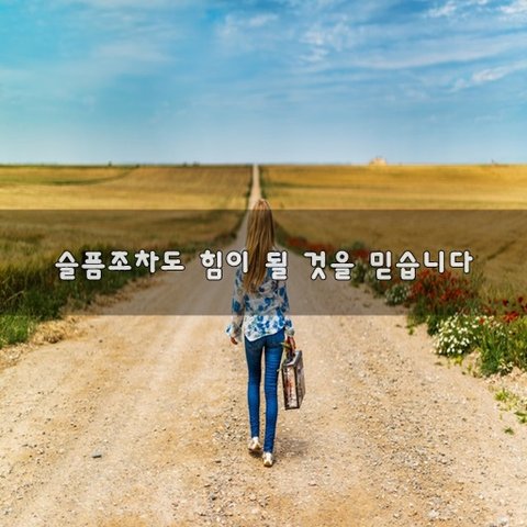 알아요, 내가 살아가는 삶에달콤한 설탕같은 행복만 있지는 않을 것임을 누구나가 다 바라죠.아주 달고 예쁘고 맛있는 삶을 알아요, 내가 살아가는 삶에쓰디쓰고 짠 소금같은 울음도 가득할 것임을 아주 슬프고 힘들고 고통스러운 삶을그런 날이 더 많을 것임을 어쩌면 내가 하는 불확실한 선택이나여러 일들이 소금밭을 걷는 쓰라림일지도 몰라요. 하지만 나는 믿어요.눈물같은 소금 속에슬픔을 아는 웃음이 담겨있다는 것을 오늘도 나는 그 소금밭을 서걱서걱 마음 안에서 녹이며 걷고있어요. 설탕같은 달콤함을 기대하는건 아니예요.난 슬픔 속에서 웃는 법을 배울거예요. 누구나슬픔을 하나씩 등에 지고 걸어갑니다.소금같이 짜고 눈물이 가득한 슬픔을. 캄캄한 밤 애잔한 달빛처럼슬픔이 내 안에 숨쉬는 날들 하지만 그런 슬픔조차도 힘이 될 것임을 나를 자라게 하는 밑거름이 될 것임을 믿습니다. 슬픔 속에서도 용기 잃지 마시길 바랍니다. - 좋은 글 중에서 -
