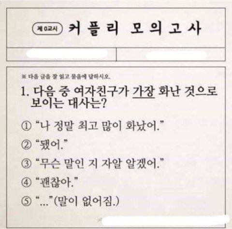 여자친구가 가장 화난 것으로 보이는 대사는?