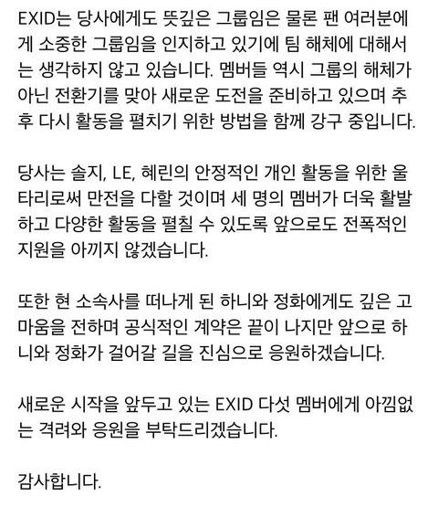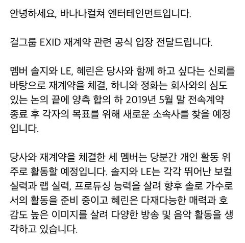 하니, 정화는 떠나고 솔지, LE, 혜린만 재계약한 EXID