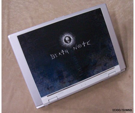 얼마전 영화로도 개봉해 큰 인기를 끌었던 데스노트의 오리지널 디자인을 넣은 이 노트북은 그 이름도 찬란한 데스노트북 !! 아쉽게도 일반 발매가 아닌 전세계 30대 한정품으로 오리지널 시리얼 넘버와 사신 류크가 좋아하는 사과 모양의 usb메모리가 동봉된다고.. (일본테레비 통판 사이트 '포슈레' 라는 곳에서 인터넷 판매했으며 3/8일 당일에 품절 되었다고..) 데스노트의 진정한 광팬이라면 케이스에 넣지 말고 들고 다니며 자랑하라는 컨셉이라고 한다..ㅎㅎ;; 맨 처음 기동시 유저이름을 입력할때 자신의 이름을 쓴다면 꽤나 오싹할 듯...ㄷㄷ 가격은 20만엔(한화기준 약 163만원) 펌/ 다음 세계엔. 오오옷. 근데 옆에 사과-ㅅ- 대략 ...............(...)