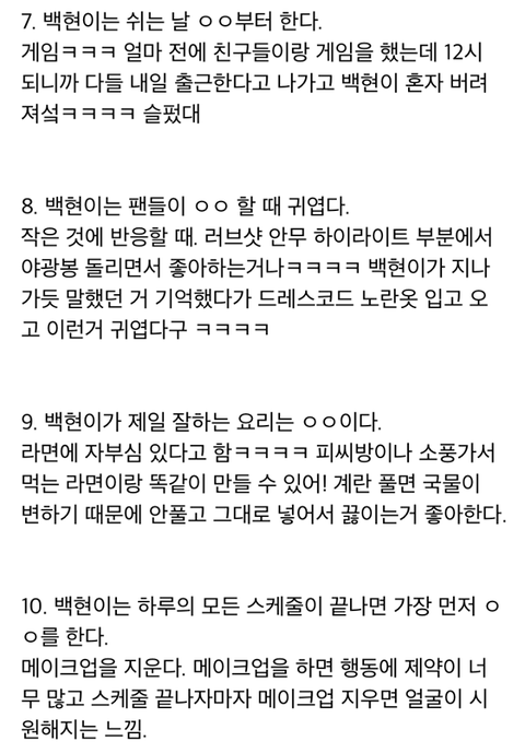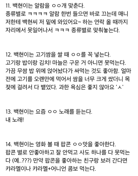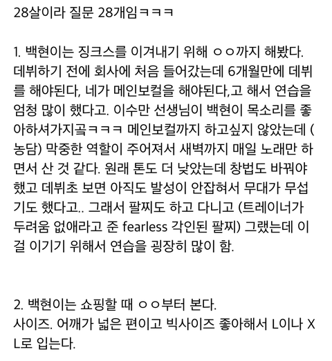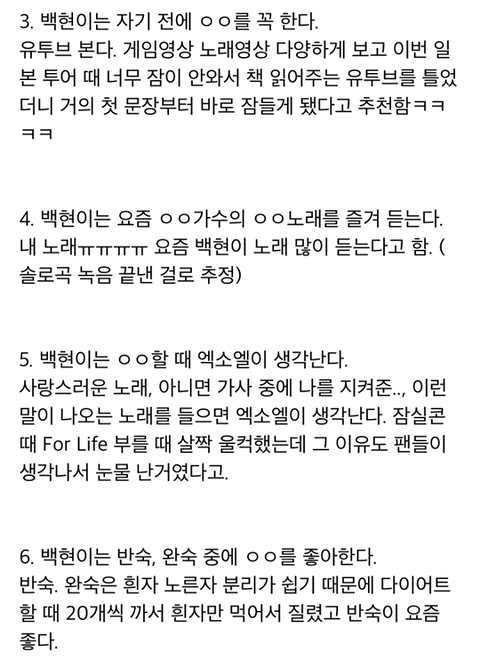 엑소 백현 생일파티에서 알려준 TMI 28가지