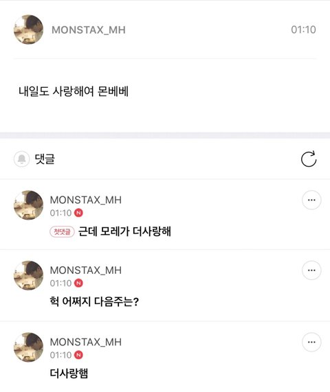 팬들이랑 소통하려는 거랑 팬들 생각 하는건 최고!!! 몬엑이들 ㅜ 해투 다치지 말고 잘하구왕