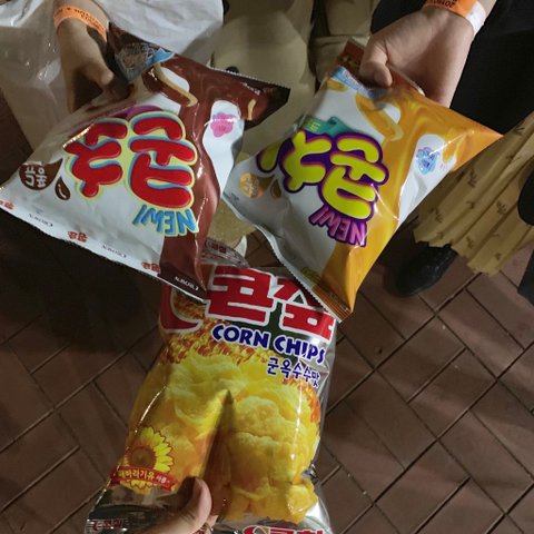 과자는 콘칲, 콘초, 콘치즈인데 고를수도 없이 주는대로 받아가라고 종용함
