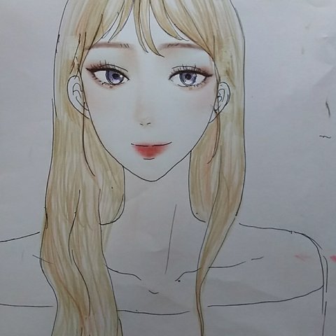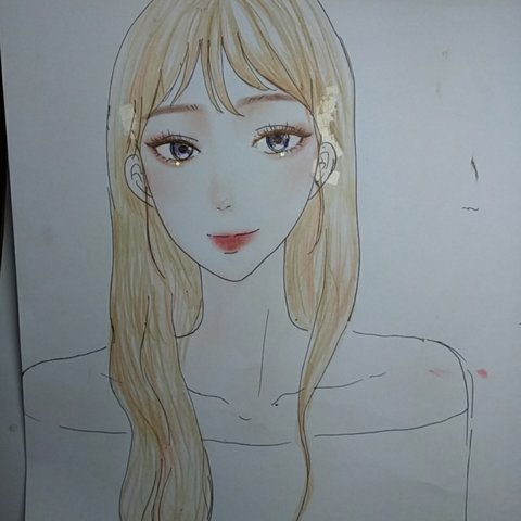 스케치 할때 느므 대충해서 얼굴도 짝짝이 눈도 짝짝이 코도 짝짝이라 제대로 안돼서 이상하지만 ㅜㅜ