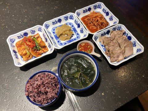 미역국 돼지고기수육 두부조림 백김치찜 무생채