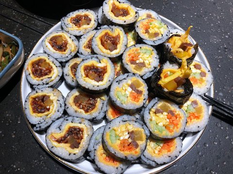 진미채볶음 단짠으로 볶아서 지단 단무지 우엉 넣고 말아