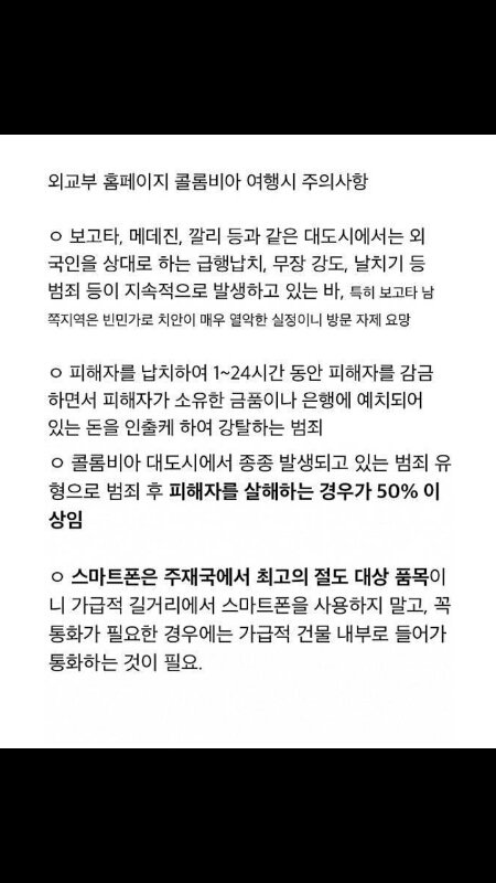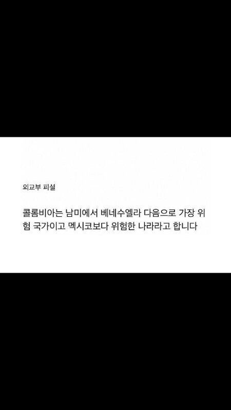 나 남미여행할 때 도시 바뀔 때 마다 택시기사한테 여기는 치안 어떻냐구 물어봣었거든? 근데 전부 다 콜롬비아에서 살아돌아왔으면 여기 치안은 문제없어~~ 이런식으로 말함..ㅋㅋㅋㅋ