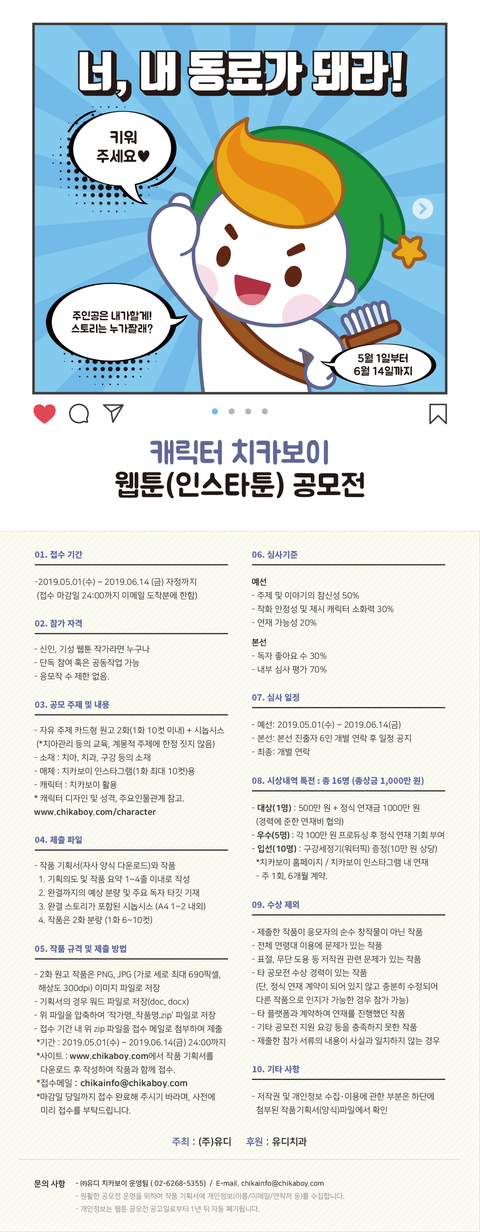 > ㈜유디 / 캐릭터 치카보이 웹툰(인스타툰) 공모전