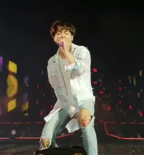 근데 아이돌무대 하는데 정국이 무릎이...피나고있는거맞지? ㅠㅠ 깜짝놀라서 몇번돌려봤는데 맞더라고 어디 찢어진건지 ㅠㅠ 공연하다가 다친건지