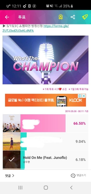 아이돌챔프 앱깔고 로그인하고 투표하는데 30초도 안걸리네~?!