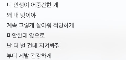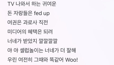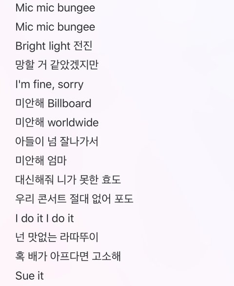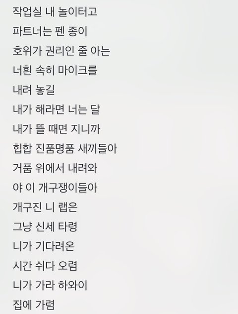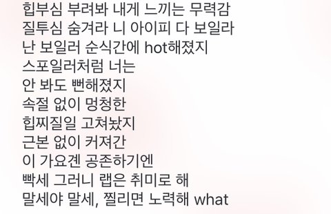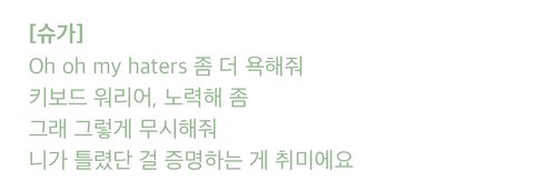 얼마나 당했으면 헤이러들을 향한 가사에서 절절함이 느껴진다.. 누군가 그랬지 민윤기가 우리편이라 다행이라고ㅋㅋㅋ ㅋㅋㅋㅋㅋ사이다 한사발 드시고 가세요!!