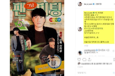 자신의 SNS에 국내 팬미팅 소식을 알린 이시언