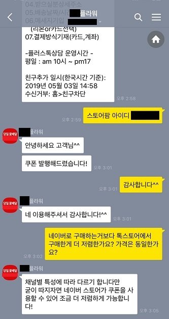 카톡 친구하고 네이버아이디 알려주 할인쿠폰 준다고도하고