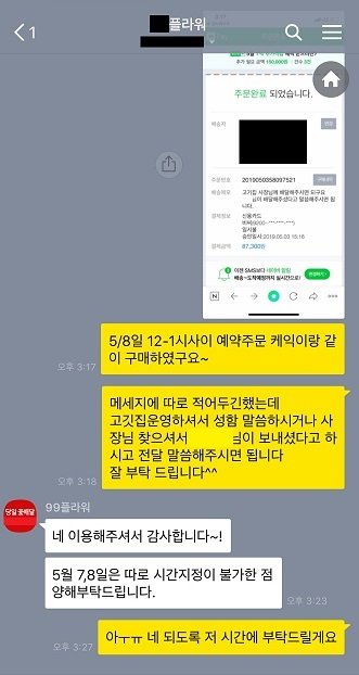중간에 케익 배송 안된거 확인해달라는 카톡도 했는데 확인도 안하고