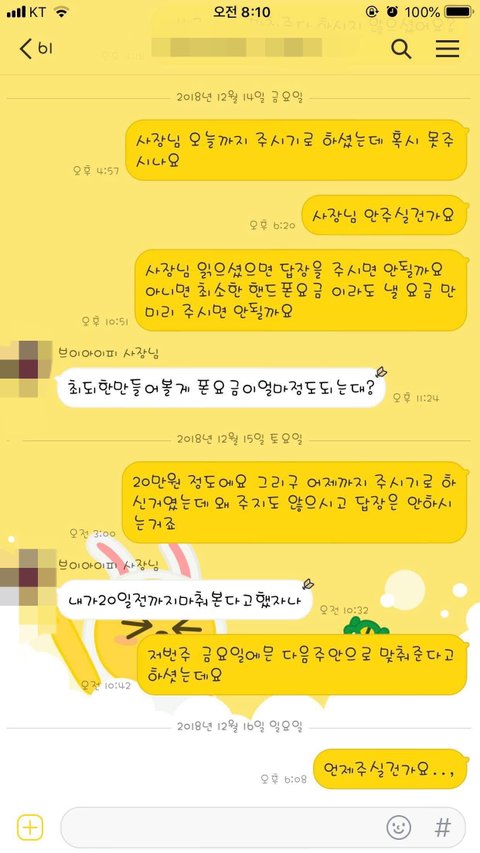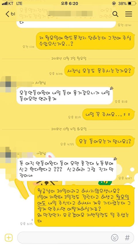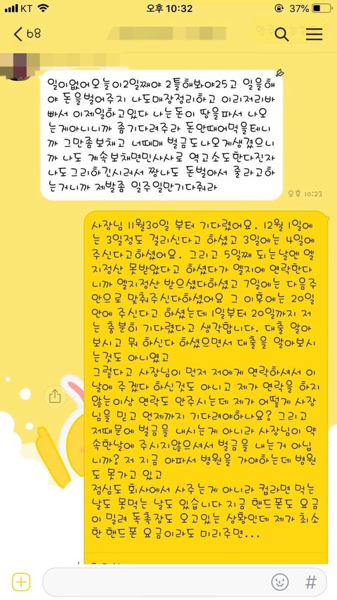 안녕하세요. 저는 22살 평범한 여자 사람입니다. 본론만 얘기하자면 저는 작년 9월부터 한달 반 정도 핸드폰판매점에서 근무를 했고 월급은 말일(30,31)이였는데 월급을 주지않으셔서 노동청에 고발을 했고 그래도 주지않고 노동청에 출석도 안하시고 연락도 안받으셔서 민사로 넘어갔지만 오히려 저를 역신고를 한다, 가만안둔다 하고 당당한 태도를 보였고