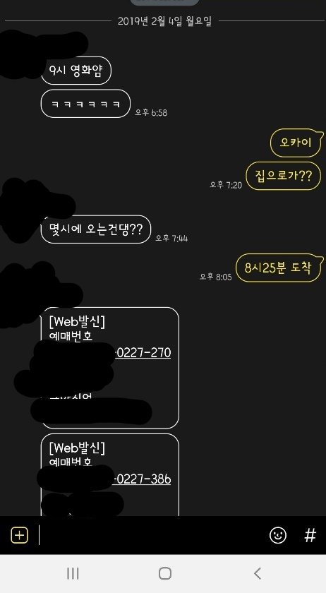 그래서 통화를 계속 하게 됨 어디쯤이냐고, 우리도 시간을 보고 , 영화시간도 안늦게 보고 막 전화 통화하게됨.