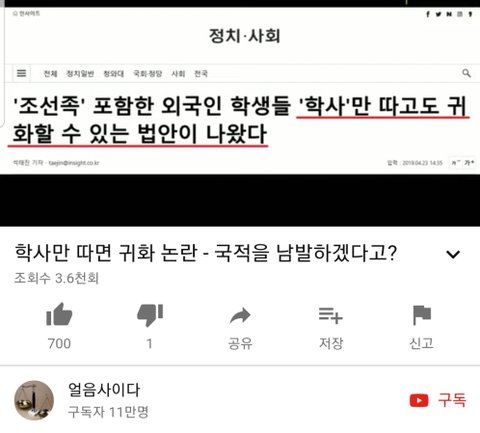 방탈 죄송합니다. 하지만 지금 심각한 법안이 통과되려고 해서동영상 링크와 뉴스링크 두개 겁니다.한국에서 대학 학사만 따면 영주권도 아니고 시민권을 주자는 법안이 나왔는데우리나라 국민이라면 아셔야할거라고 생각해서 공유합니다. 세계에서 시민권 따기 가장 쉬운 나라되겠네요. 한숨만 나옵니다.