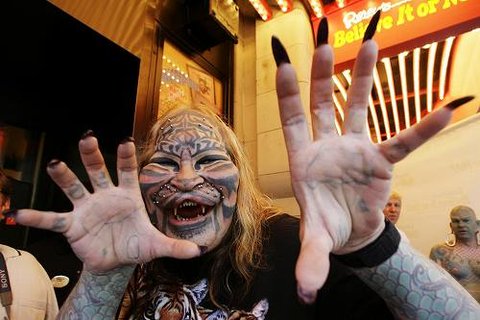 2007년 6월 21일 뉴욕에서 있었던 '리플리의 믿거나 말거나 오디토리움(the ripley's believe it or not odditorium' ) 그랜드 오프닝에 참석한 기인들. 외계인들이 있다면 아마도 이런 모습 아닐까요? 스타워즈 보면은 이렇게 생긴 사람들 나오잖아요 ㅋㅋ