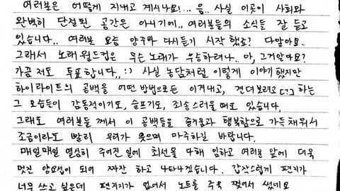 솔직히 이번일로, 10년차에비해 꽤 크고 단단한 코어팬덤 이었던 우리가 많이 휘청거리고 그런걸 서로 바라보면서 더 흔들리게되고, 정말 힘들었는데 여전히 많이 칭찬해주고 믿어주고 기다려주는 사람들이 많다는거에 위로가된다. 고마워 얘들아 정말 고마워 ! 우리애들 오래토록 노래할테니 계속 듣고 기다려줘.