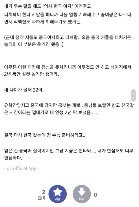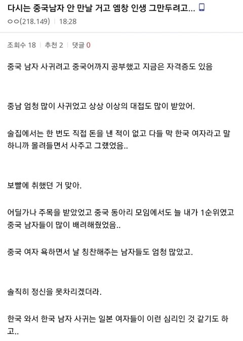 한국 여자한테는 중국 여자에 비해