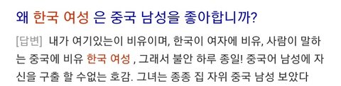 한국 여자가 중국 남자한테 환상 갖는 거