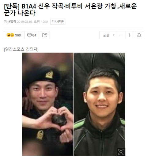 새 군가 만들고 부른다는 b1a4 신우와 비투비 서은광