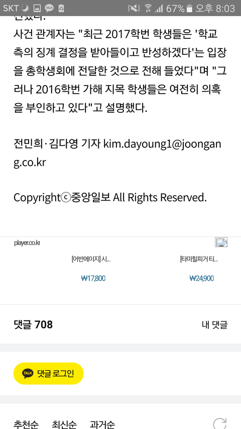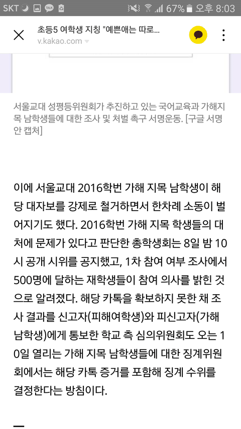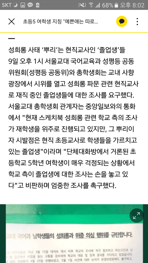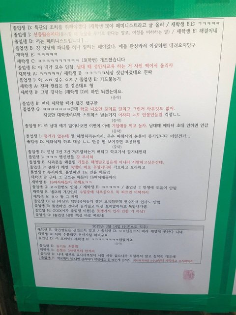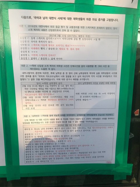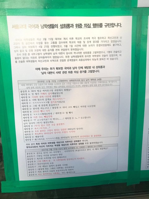 밑에는 여학생들이 쓴 대자보와 카톡대화내용