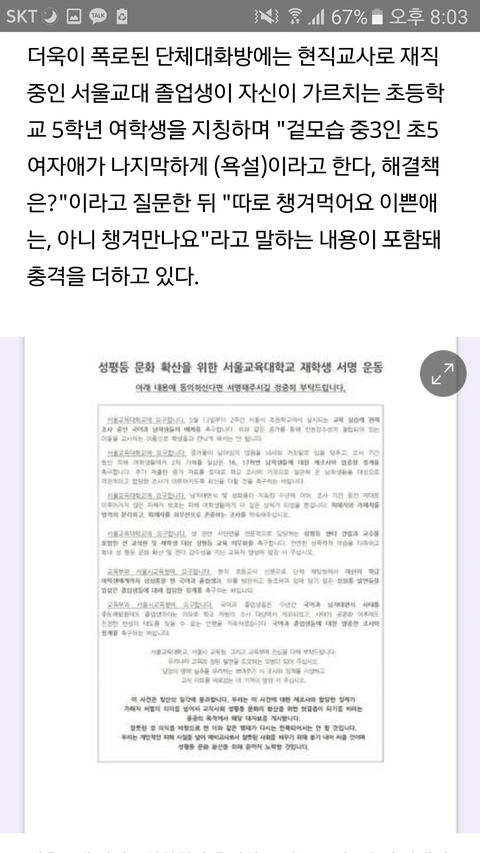 서울교대 국어과 5학년 여학생 성희롱 (서울교대 여학우 몸평 얼평 한 그곳)