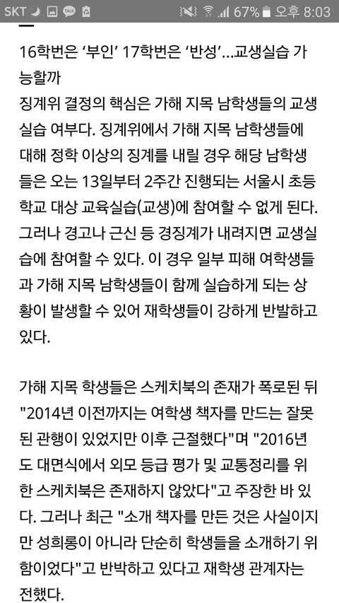 멀쩡하게 실습나가고 졸업한다고 함^^ 현직교사 처벌 없음^^