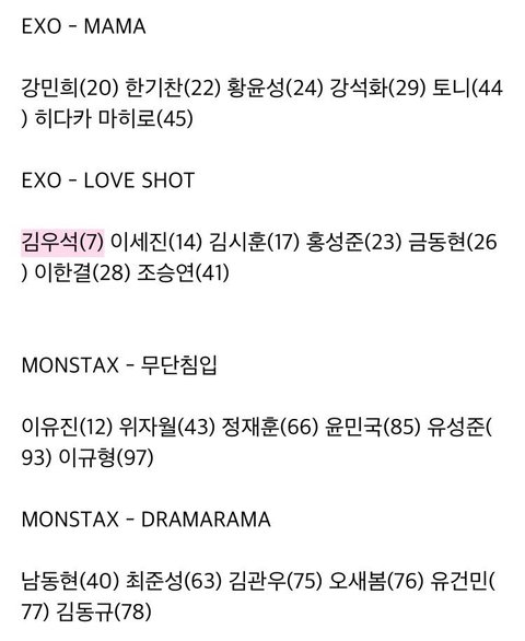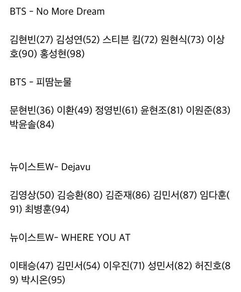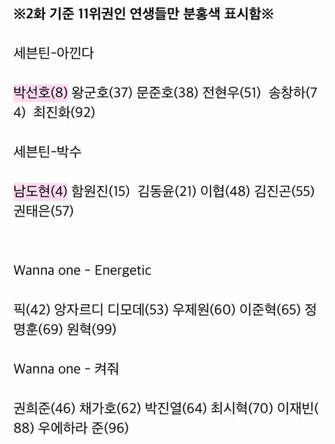 프듀X 2회차 순위 넣어서 정리한 1차 경연조