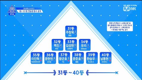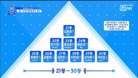 프로듀스X101 2화 현 순위