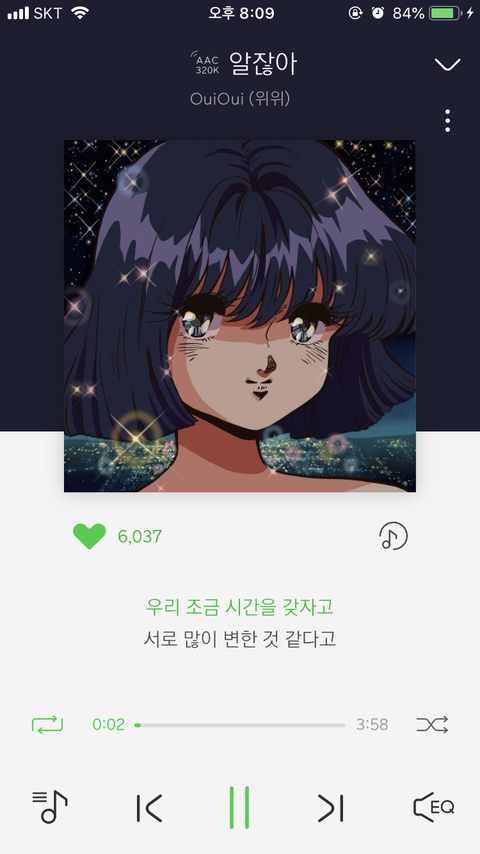 이 노래 진짜 좋아.... 예전부터 듣던 노랜데 요즘 다시 들으니까 좋더라구 위위 노래 다 좋긴한데 개인적으로 이노래가 진짜 좋은것같아 잔잔한데 이별 노래라서 또 절절해 밤에 듣기도 좋은듯 추천
