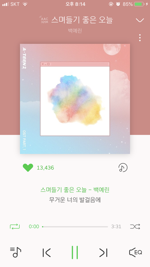 요즘 이거 제일 많이 들어... 나온지 얼마 안됐고 아는 사람은 많긴한데 너무 좋아서 추천해 솔직히 백예린이 논란이 좀 있어서 안들을려고 했는데 노래가 너무 좋아서 어쩔수가 없었다^^... 유튜브에 김하나가 부른 버전도 있는데 그것도 진짜 좋으니까 시간나면 꼭 들어보길 강추강추