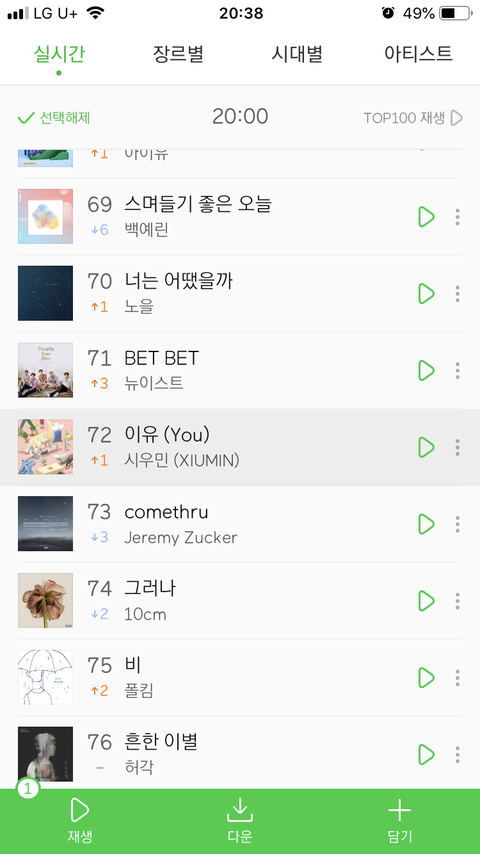 엑소엘들이 엑소가 국내 원탑이라는 얘기를 하도 많이 하고 다녀서 그런가보다 했는데 나온지 이틀 된 노래가 72등이라니... 저번에 톡선 올라온 글 보니까 막 스밍 이벤트한다고 하면서 홍보하던데 그렇게까지 했는데도 72위인가ㅠㅠ 노래 좋던데 아쉽네