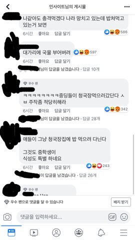 그거 영상으로 기사뜨고 그중 학생 한명은 내친구가 아는앤데 인사이트 댓글 수준봐 ㅋㅋㅋ청국장 먹는거로까지,,,걍 놀러가서 점심먹은거라는디 날조오짐